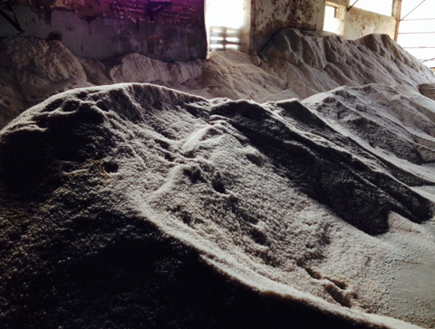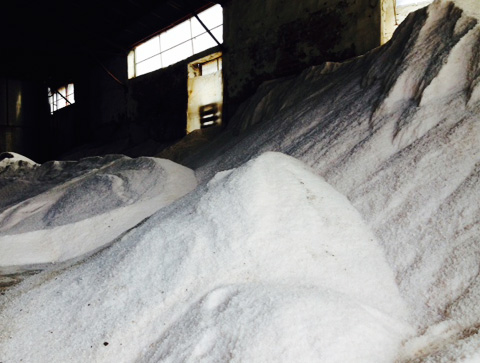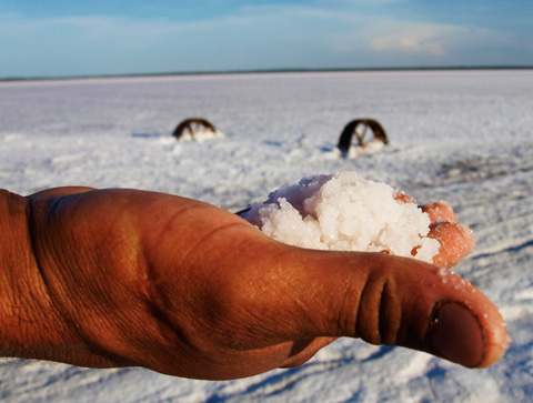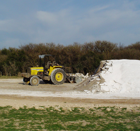 Las lluvias de primavera lavan los campos salitrosos circundantes, aportando aguas de gran concentración salina, luego, la sal cristaliza en bellos cubos, formando una roca llamada halita. Entre diciembre y marzo se produce la cosecha. La sal es descargada en grandes tolvas, y se hacen parvas de estacionamientos. "Cumplido el Ciclo de Estacionamiento, se realiza el primer lavado, luego un segundo lavado, que se realiza "por gravedad, inyectando la salmuera purificada a contracorriente", la salmuera se acumula en un tanque preconcentrador de 3 metros cúbicos.